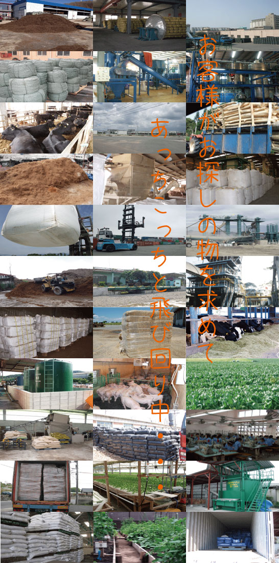 国内・海外で調達されたい飼料・肥料・園芸資材・畜産資材などに限らず、様々な資材・商材をお客様と相談しながら一生懸命お探しします。